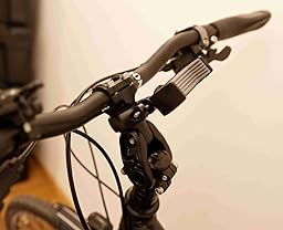 Vibrelli Universal Bike Phone Mount Holder. Using this with my Nexus 6, and it fits like a glove. Beware that the spring-loaded phone clamp may cover buttons or jacks on the edges of your phone. I’m happy with the quality and construction. It comes with a hex key for tightening the nut and bolt that secure the clamp, along with three strips of rubber that can be stacked for attaching to a thinner bar. Also included are three sets of very stretchy web grips for attaching your smartphone to the mount, in red, black, and grey. I wanted to avoid stacking more than one strip of rubber, so I attached the mount to the thicker main bicycle handlebar post, as you can see in the pictures. That also gave me a center location, which was nice, too. I had trouble lining up the threads, until I pinched the plastic clamp together with one hand while turning the hex key with the other. It took a moderate amount of hand strength to do that, and it would have been easier if someone was helping me. A sturdy plastic ball-and-socket, with a large nut you can tighten, allows the angle of the smartphone to be adjusted and fixed. This seems to be a good design, but I will have to wait a few days before I can test it out. I’ll report back if any negatives.